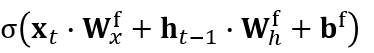 이전 기억 셀 ct-1이 가지고 있는 정보 중에서 중요하지 않은 정보를 삭제하는 역할을 한다. 이 과정에서 ht-1과 xt의 정보를 사용한다.