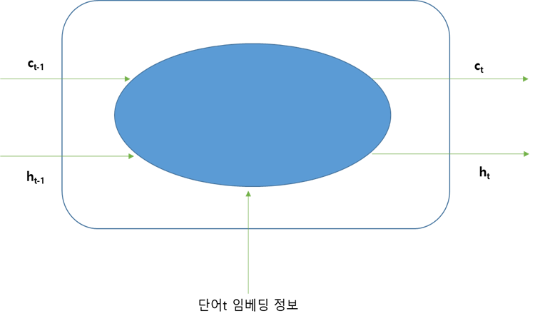 xt : time step=t에서 LSTM층에 입력된 단어의 임베딩 벡터, 원소를 K개 가지고 있다고 가정 (1 x K 형태)