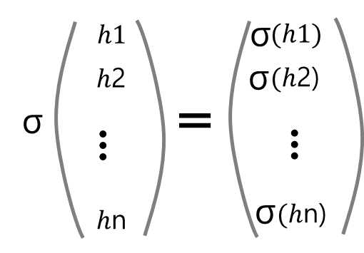 위의 시그모이드 함수 내부의 요소들의 행렬의 크기를 바탕으로 연산 결과를 확인해보면 최종적으로 1xh 형태로 출력된다는 것을 알 수 있다.