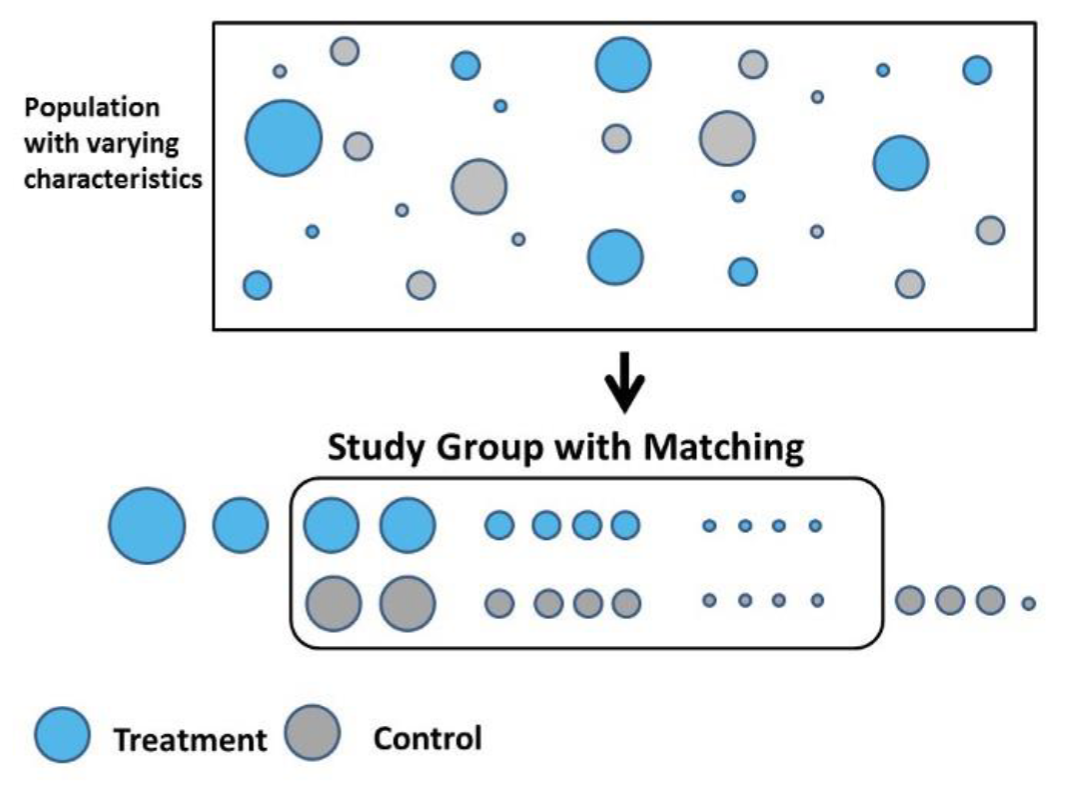 treatment 그룹과 control 그룹의 특성을 유사하게 만들어서 비교하는 방법