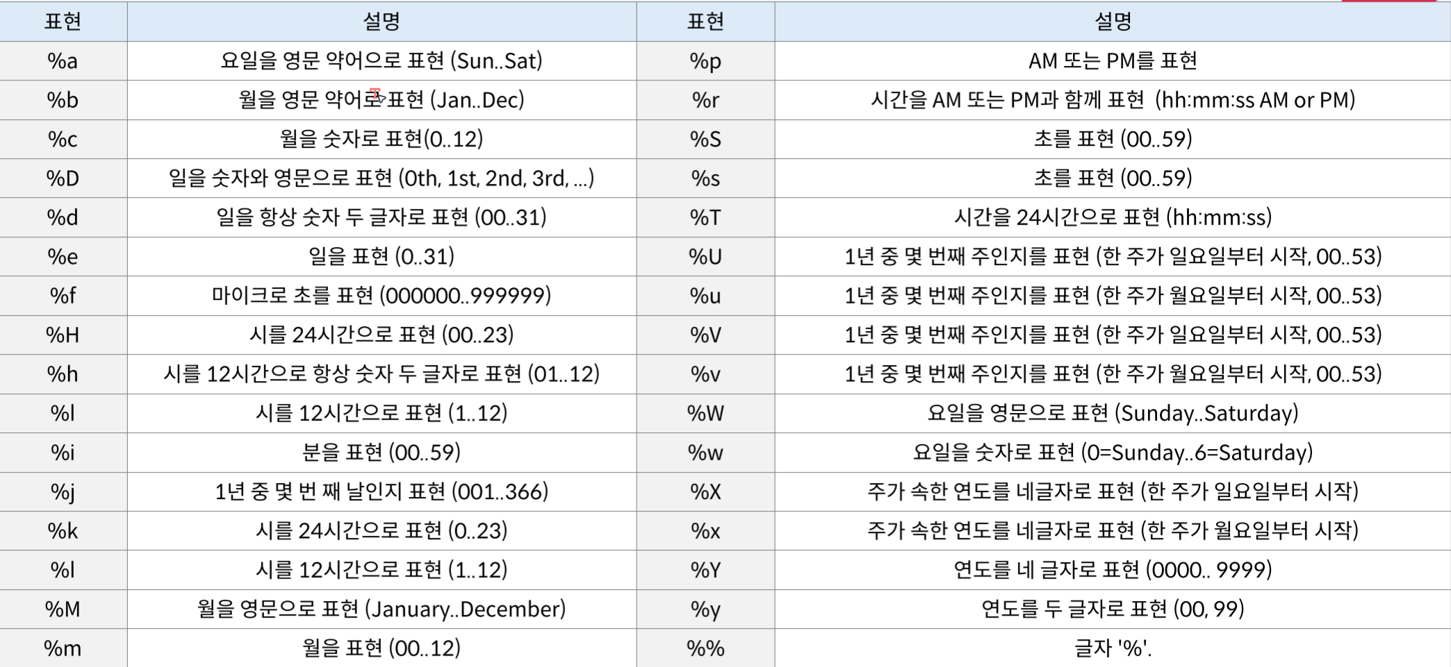 📌DATE_FORMAT 함수에 들어가는 형식 세부 분류