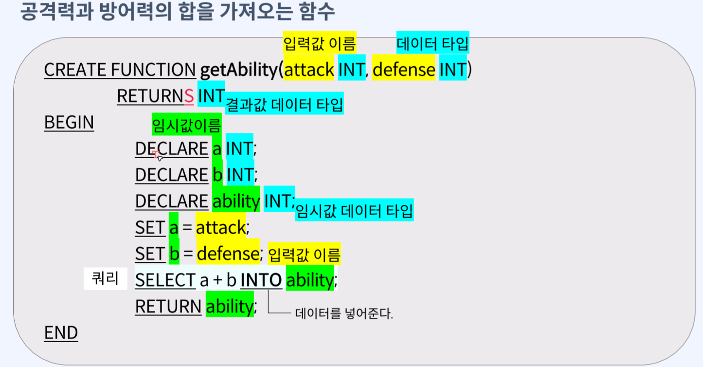 • DECLARE는 함수 안에서 사용하는 임시 값임.