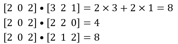 인코더에서 넘어오는 값인 h0, h1, h2와의 내적 연산을 수행하면 다음과 같다.