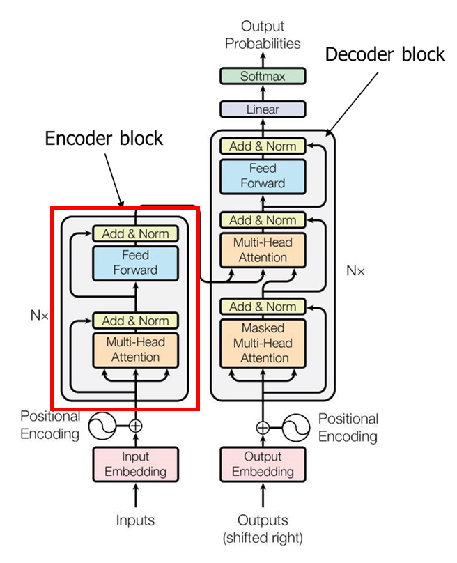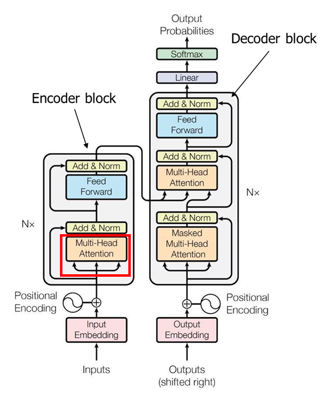 총 6개의 인코더 블록과 디코더 블록이 반복해서 사용되는데, 6개에 대한 논리적인 근거는 제시되어 있지 않다.