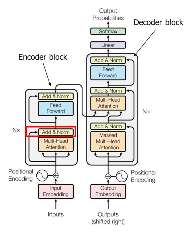 Multi head attention을 통과한 값에 Residual Block을 더하는 과정과 정규화를 하는 과정이 진행된다. 여기서 Add 과정은 Residual connection과 동일한 의미이다.