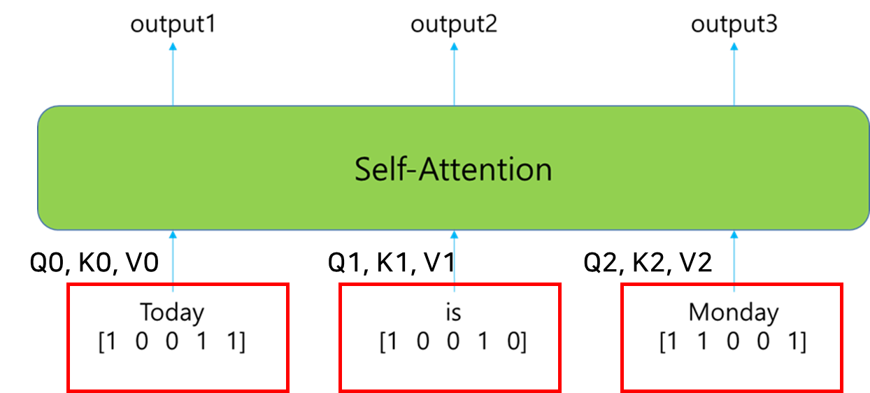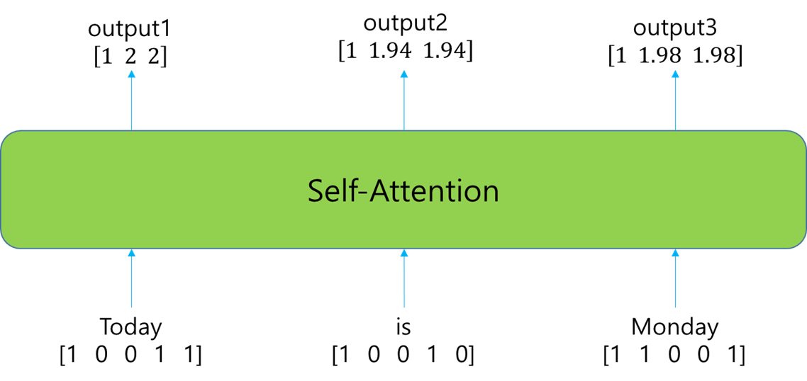 이 상태에서 'Monday'에 대한 self-attention 결과를 얻고자 하는 경우