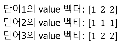 그리고 벡터의 값을 원소별로 더해서 최종 결과를 출력한다. 이 과정을 단어 2, 3에 대해서도 수행한다.