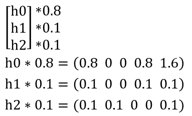 h0에 더 많은 가중치친 0.8을 부여해서 원소마다 곱한다. 동일한 작업을 h1, h2의 각 가중치에 대해서도 실시한다.