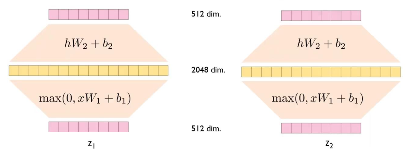 FFN은 전달된 z1, z2에 대해서 별도로 계산을 수행한다.