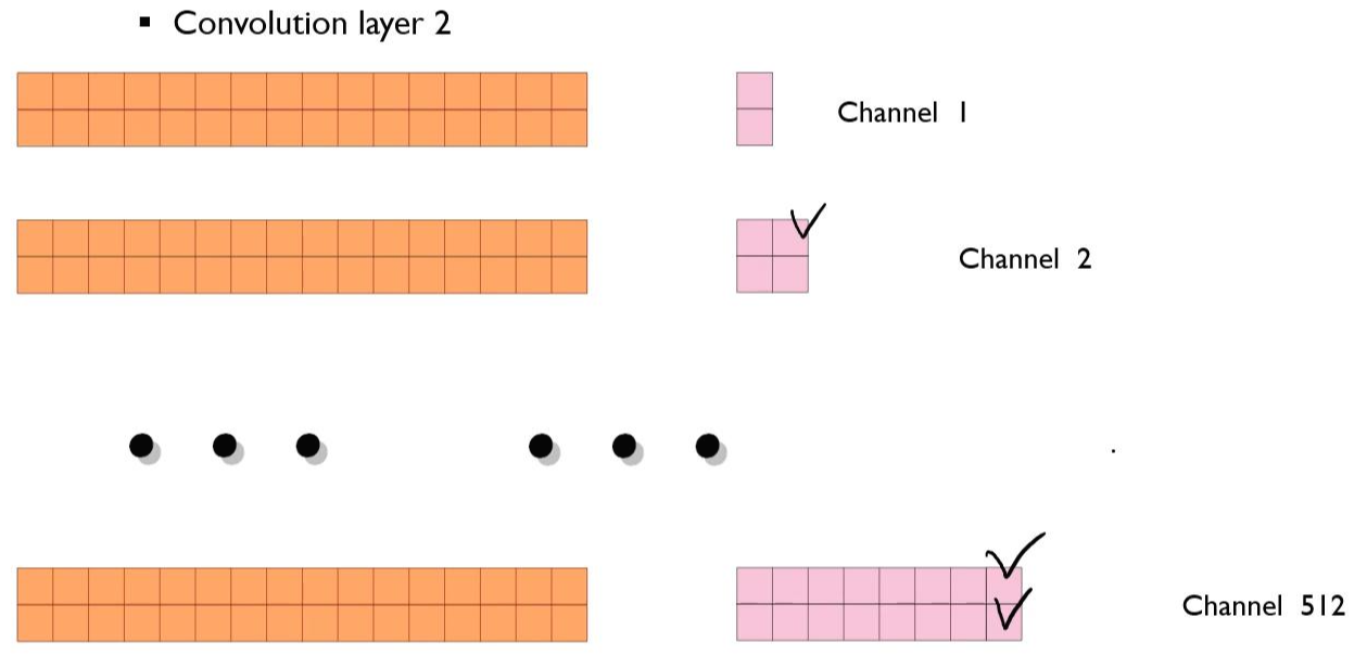마찬가지로, 1x2048 크기로 컨볼루션 연산을 수행하는 과정을 총 512회 반복하게 되면 512차원의 분홍색 벡터를 계산할 수 있다. 최종적으로 512차원의 벡터가 출력된다.