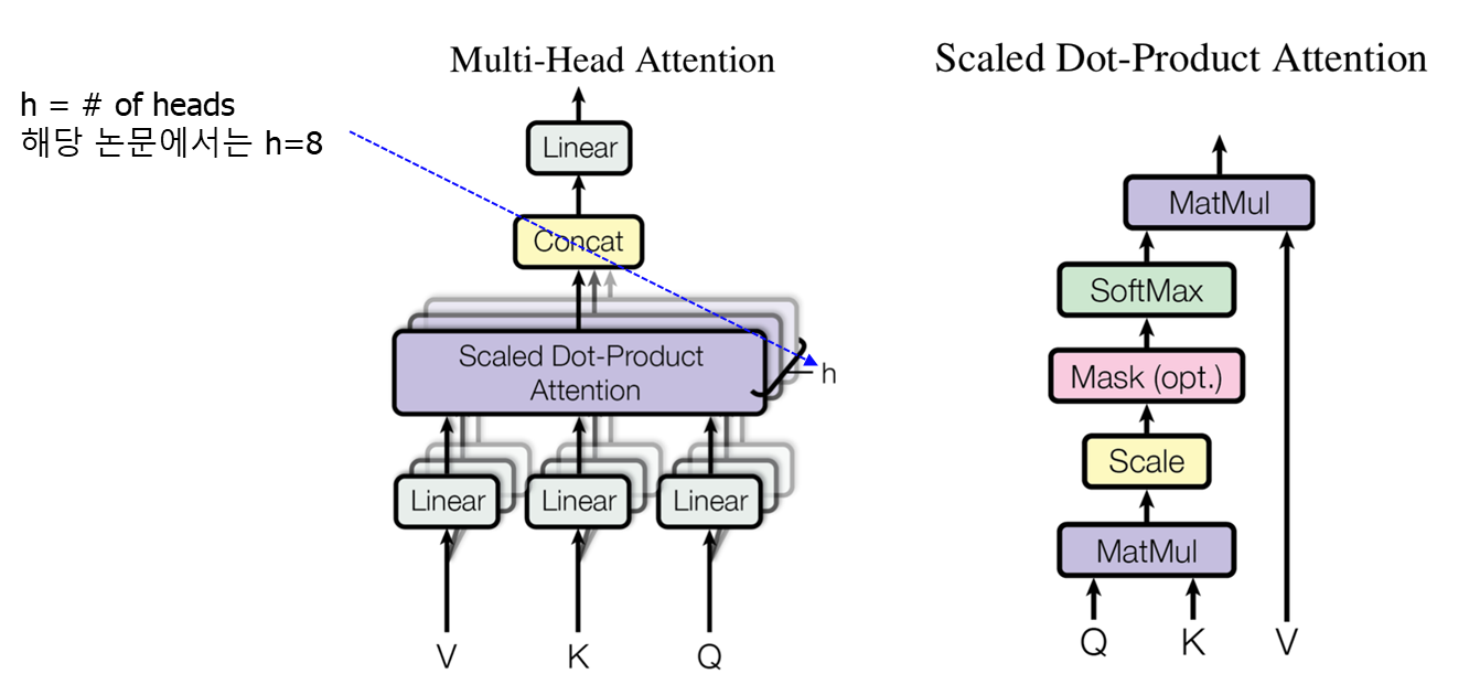 multi head attention의 전체 구조는 위와 같다.