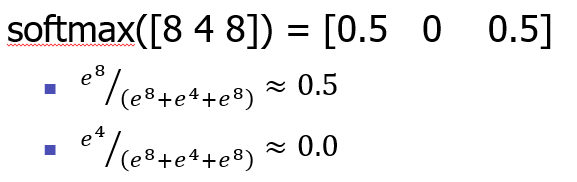 이를 softmax 함수에 통과시키면 0으로 출력된다.