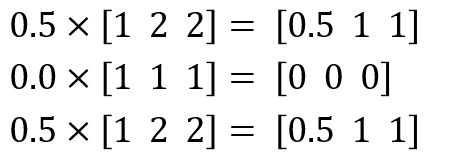 h0에 더 많은 가중치친 0.8을 부여해서 원소마다 곱한다. 동일한 작업을 h1, h2의 각 가중치에 대해서도 실시한다.